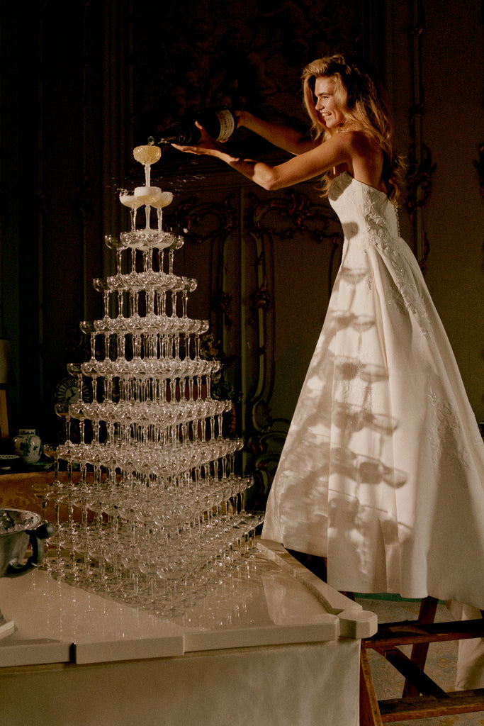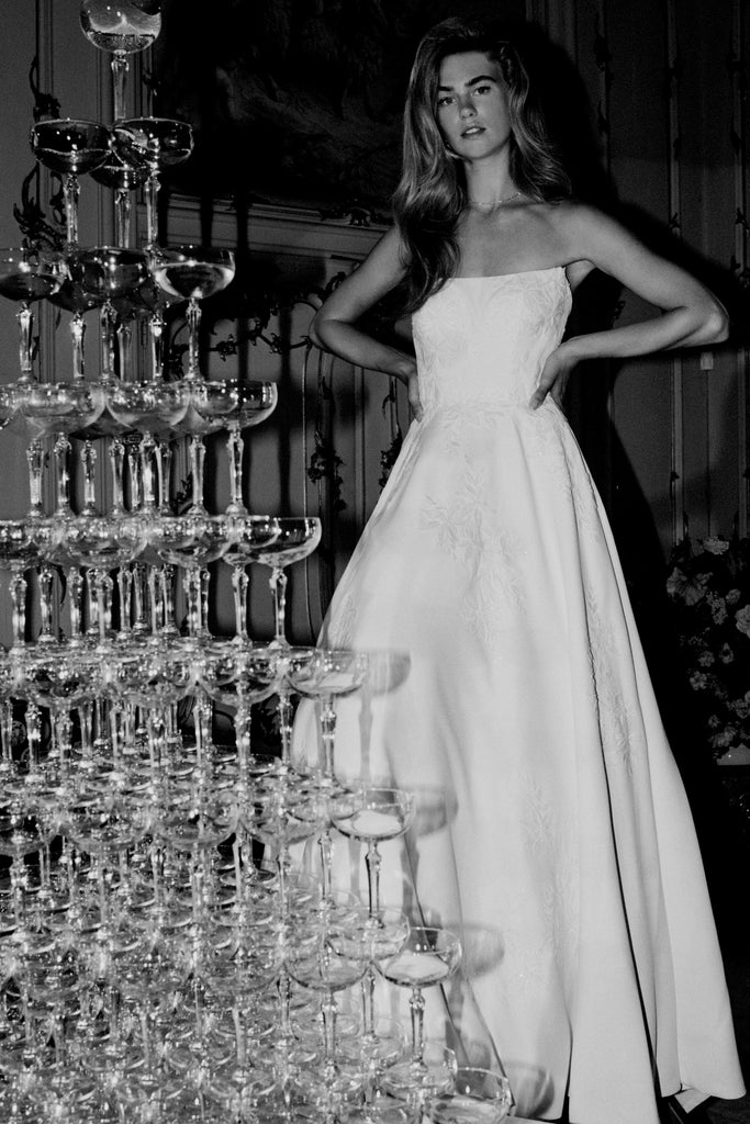 Satin A-Line Gown with Embroidered Lace and Chapel Length Train