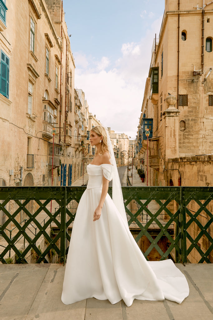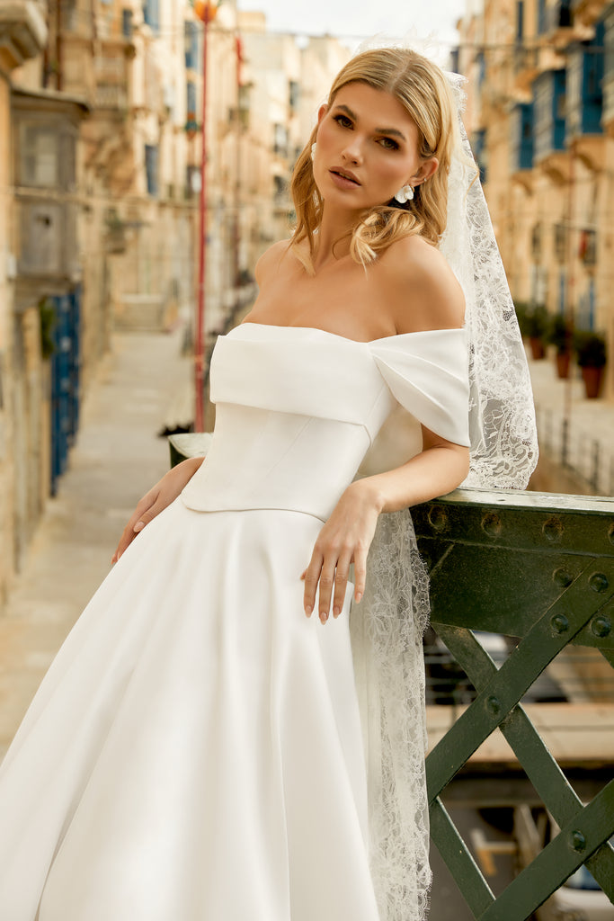 Mikado Strapless Corseted Bodice with A-Line Skirt