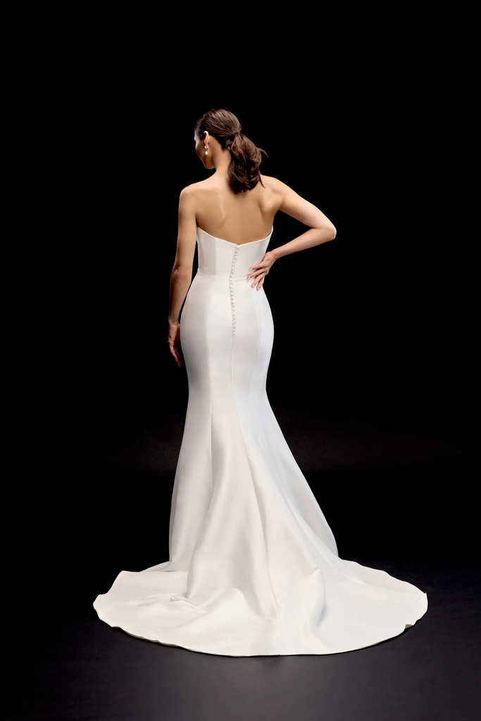 Stretch Mikado Fit and Flare Gown with Oversized Floral Couture Detail