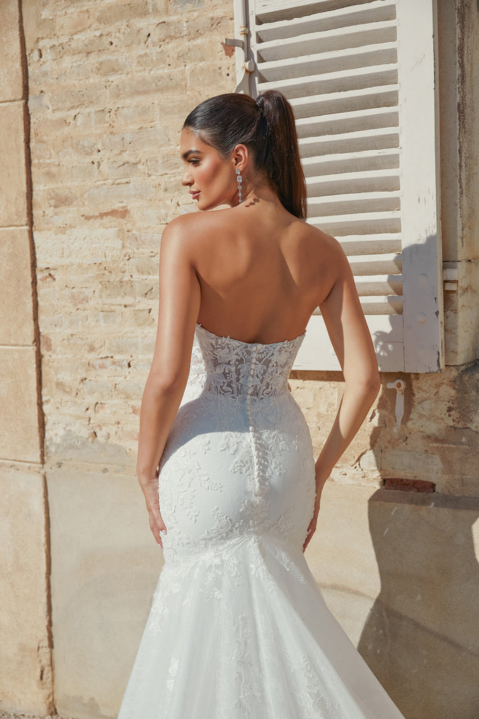 Strapless Chantilly Lace Trumpet Gown with Pointed Sweetheart Neckline