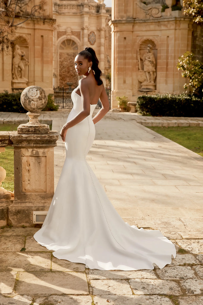 Satin Mermaid Gown with Princess Seams and Side Godets.